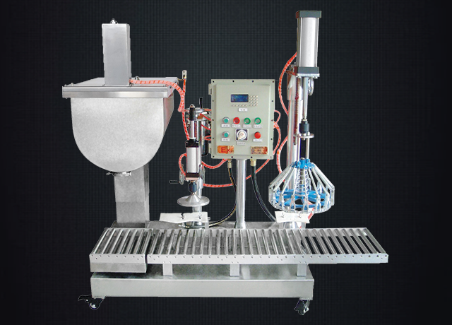 自动化控制仪表接收称重传感器给出的重量信号,控制进料阀的开度(0-90度),实现自动灌装的目的;并配有输送辊道及压盖/夹盖装置,完成物料灌装与密封过程。
