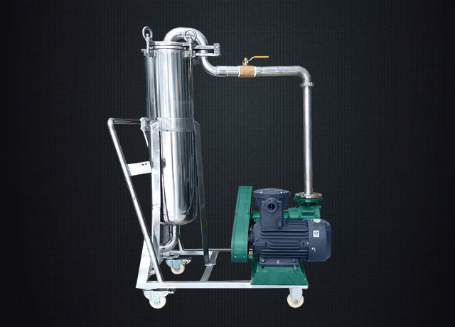 移动式袋式过滤器包括了一个不锈钢袋式过滤器、气动隔膜泵、气源二联件、单气控阀,装置在手推车上,可随意移动至任何生产线上进行工作。袋式过滤系统是一种新型的过滤系统,过滤机内部由金属网篮支撑滤袋,流体由入口流进,经滤袋过滤后从出口流出,杂质被拦截在滤袋中,更换滤袋后继续使用。主要用于过滤产品的杂质,带压力监测表,当压力过大提醒更换滤袋。